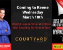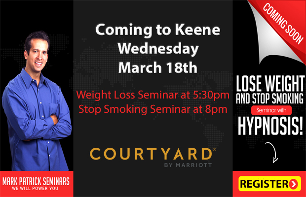 Lose weight or stop smoking FOR GOOD for the power of hypnosis! Coming to Keene Wednesday, March 18th. Click for more info and to register!