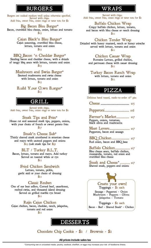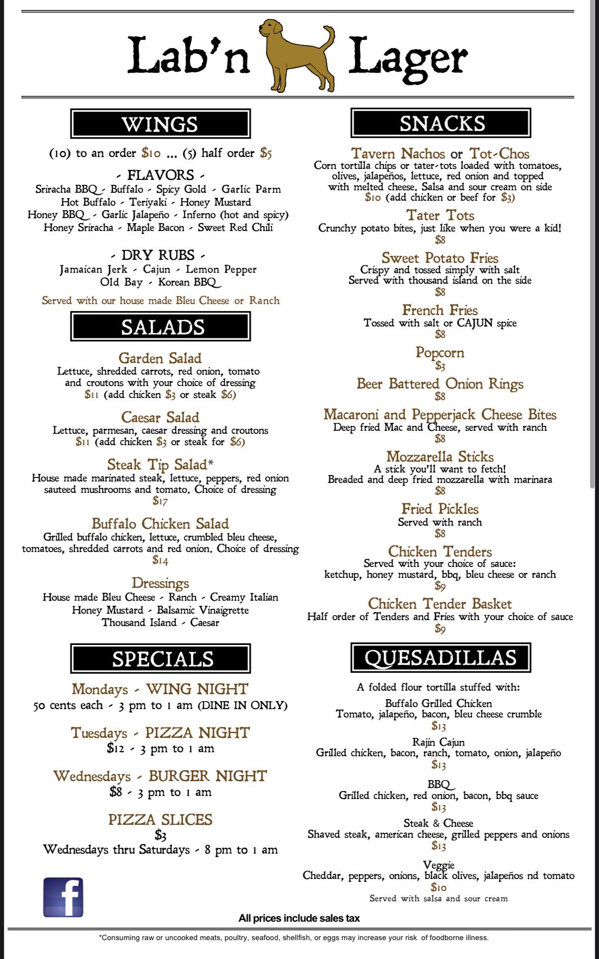 Lab is more than just a bar, it also has a FULL menu of great food from wings to salads, quesadillas, burgers, wraps, pizza and more!