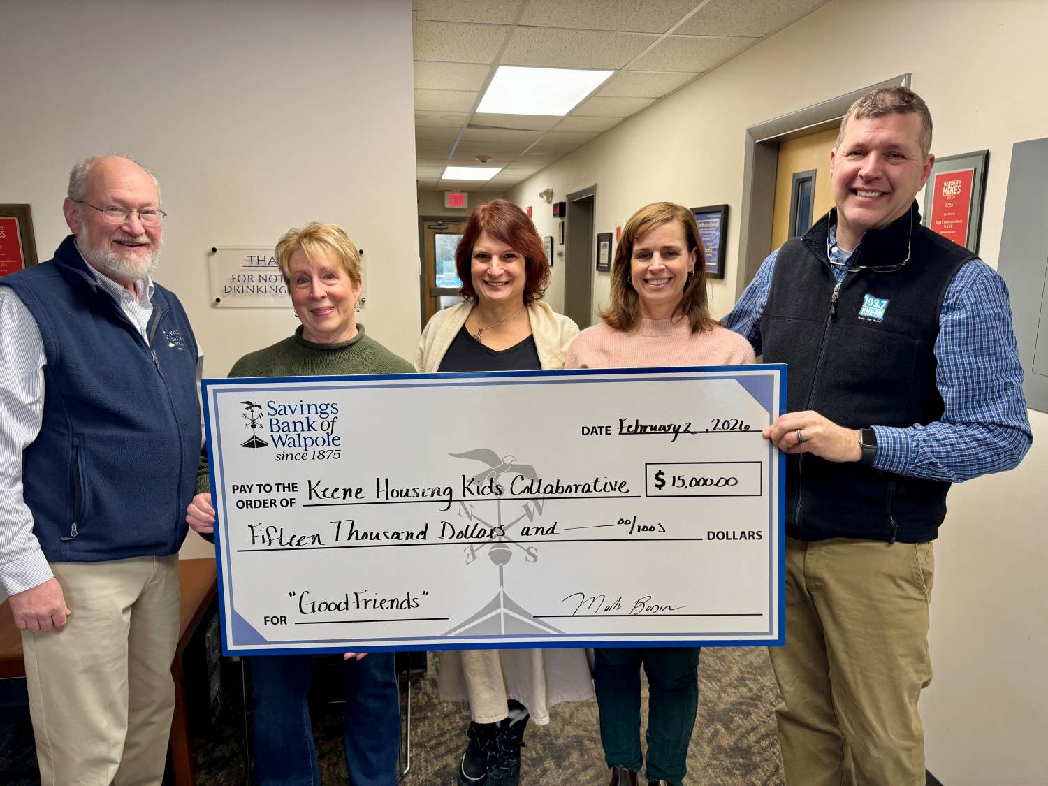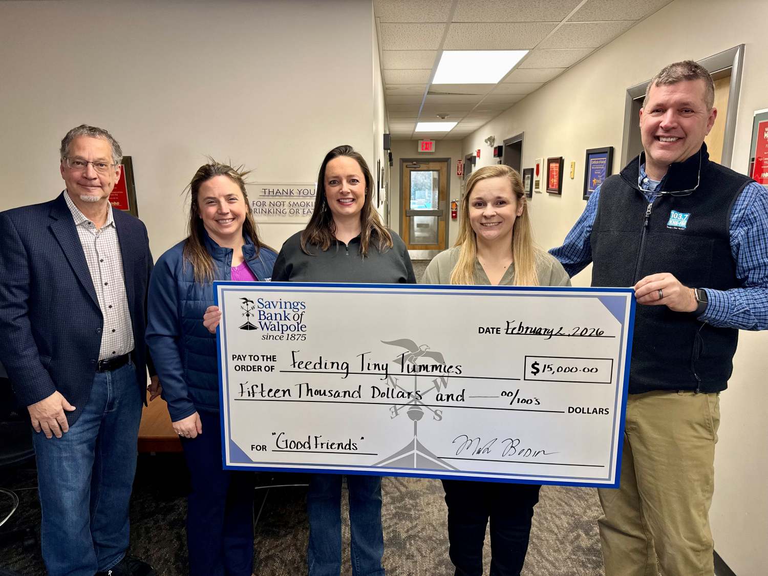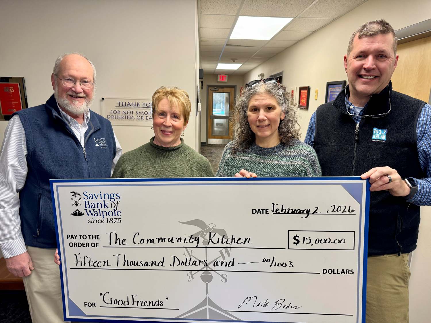 Thank you to everyone that purchased a Douglas Cuddle Toy Good Friend at the Savings Bank of Walpole this past Holiday Season! Because of your purchase, we were able to present a check of $15,000 to The Community Kitchen, Feeding Tiny Tummies and The Keene Housing Kid’s Collaborative!